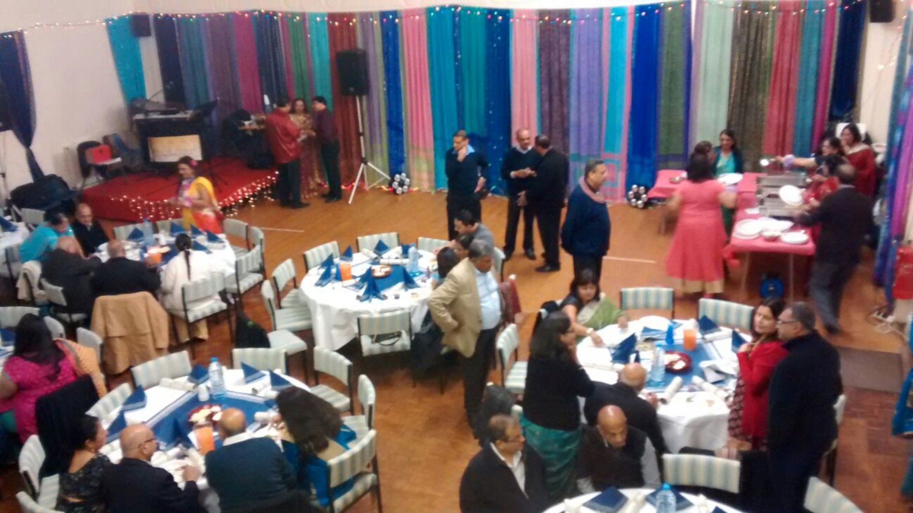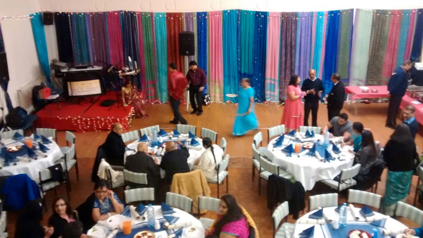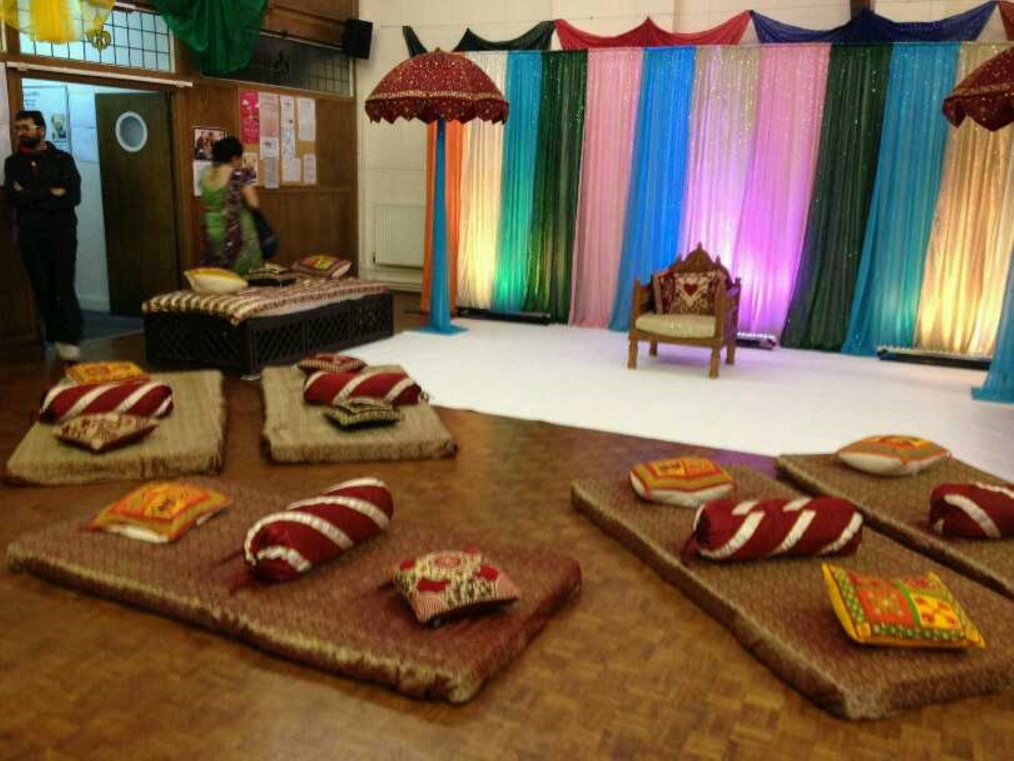 The venue is located right in the heart of Hounslow with very good transport links. A function hall with high ceiling available to hire with its own adjoining kitchen facilities and small meeting room available to use. Meeting room can be hired separately. The hall has a flexible layout and is suitable for a range of events from private parties, mehndi nights, live music to seminars/conferences. Terrace balcony available for additional seating (benches) subject to venue maximum capacity.